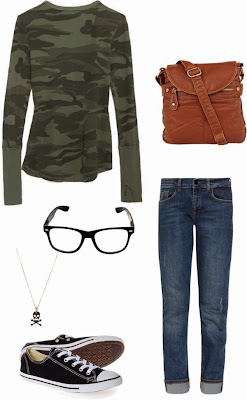 It’s pretty hard making camo look girly, so adding in some rose-hued items and lace details added the girly-ness this look needed. Some pearls or dainty jewelry will also be extra girly.
