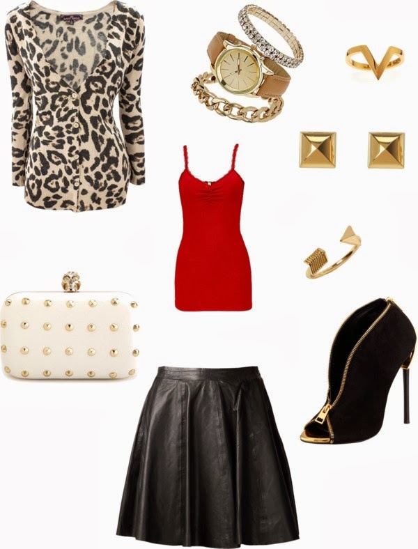 This look is great for an edgier gal! Studs, zippers, and leather scream edgy to me. Adding some tights would make this outfit perfect for the colder months.