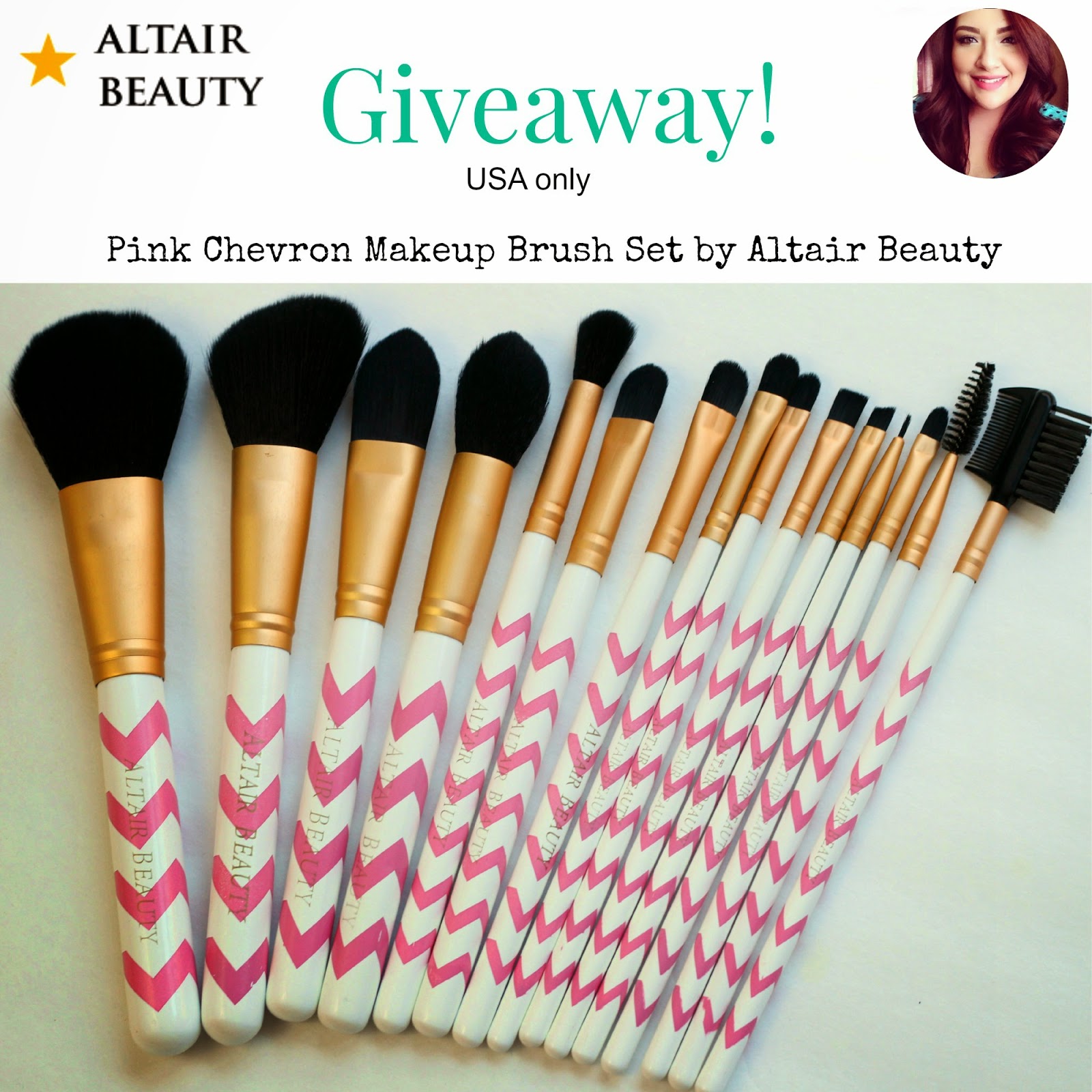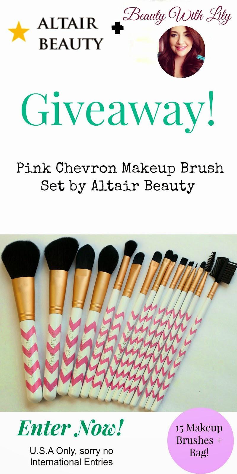 I have teamed up with Altair Beauty, to giveaway a 15 Piece Pink Chevron Makeup Brush Set by Altair Beauty!
