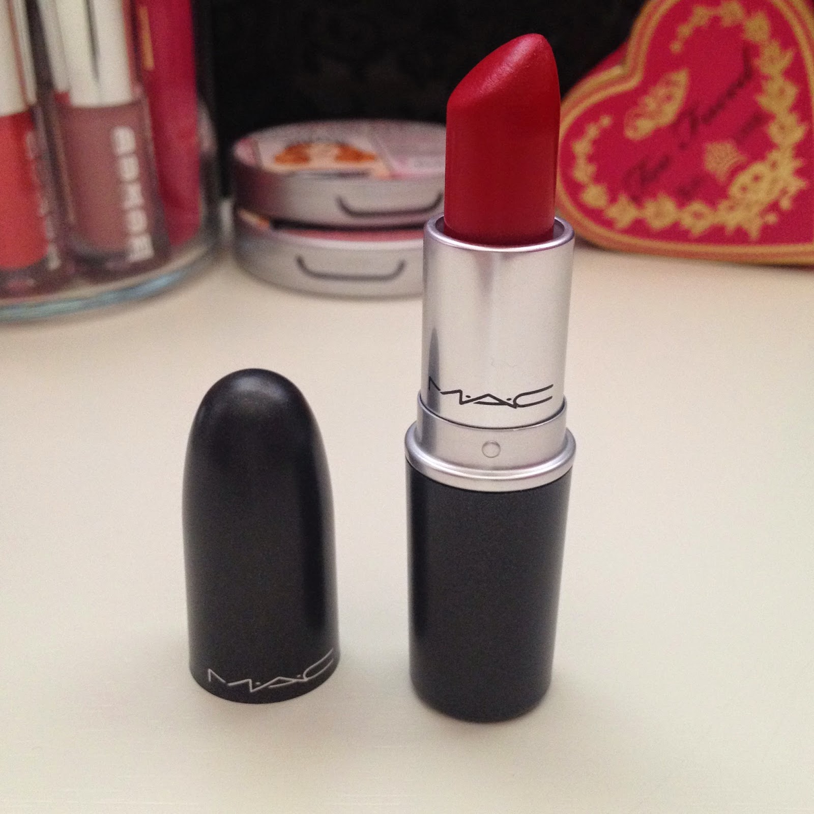 ❤ I actually don’t own a lot of red lip products, but one of my favorites at the moment is MAC Red. It’s a Satin finish, one of my favorite finishes by MAC and it has a blue-ish undertone to it, which I look for in a red. It’s a bright, vivid red, so it’s definitely eye catching!