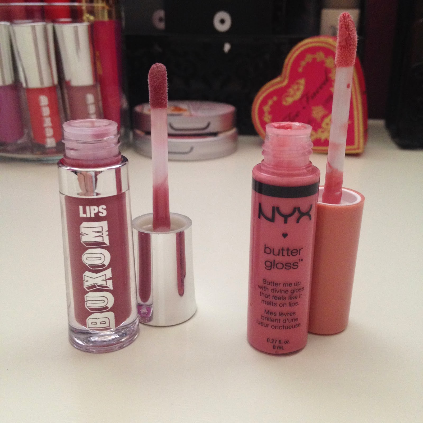 ❤ Buxom Lip Glosses, they are some of my favorites. They smell good, aren’t sticky, and make great toppers. I also love the NYX Butter Glosses, they are more pigmented than the Buxom Glosses, so they can be worn alone and they smell delicious!
