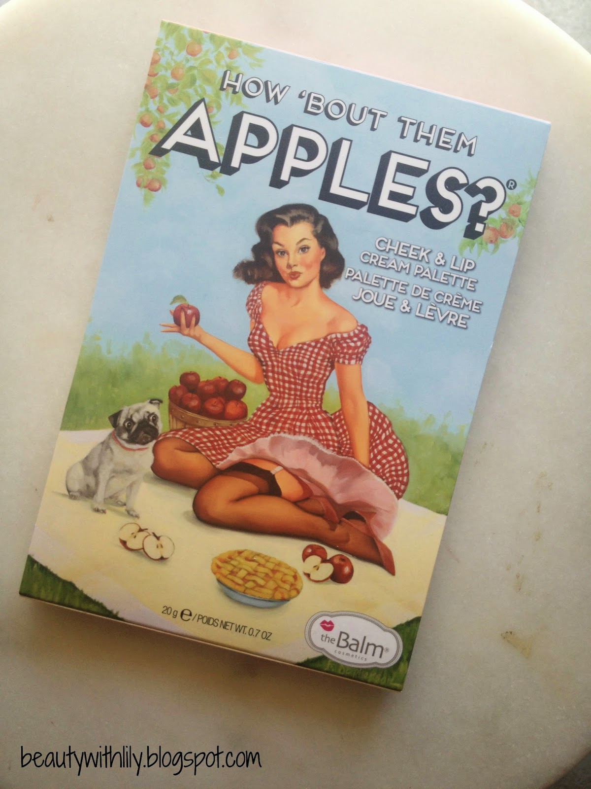 - The palette is of thick, cardboard material–typical The Balm packaging–very cute and whimsical!
